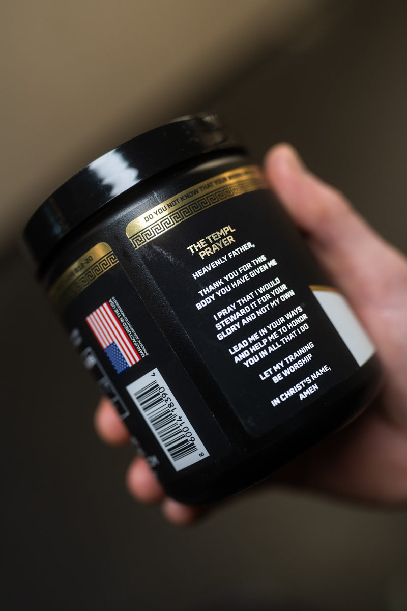 Every supplement features The TEMPL Prayer to help you dedicate your workout, crucify your flesh, and honor God with your body as a TEMPL of the Holy Spirit.